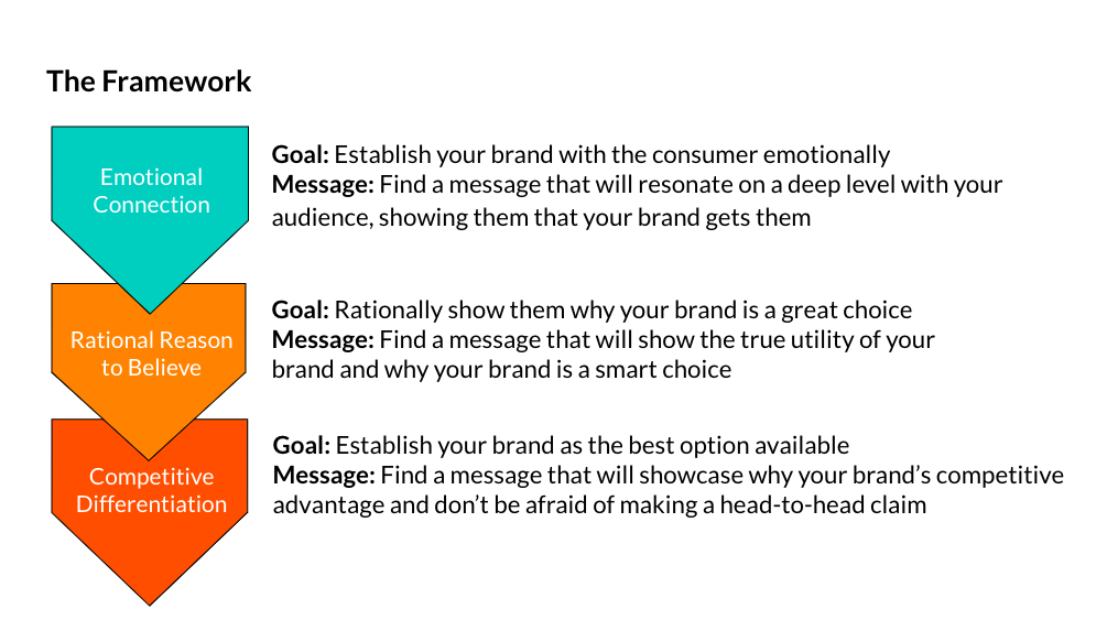 Imperative: Show your audience that your product or service fits their needs perfectly - creating a rational connection.